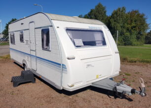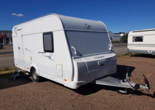 Utrustning: ALDE vattenburen värme, golvvärme, kylskåp med frysfack, mikrovågsugn, köksfläkt, duschkabin, delbar ytterdörr, brandsläckare, förtält Isabella Crown Gold 2,5m.